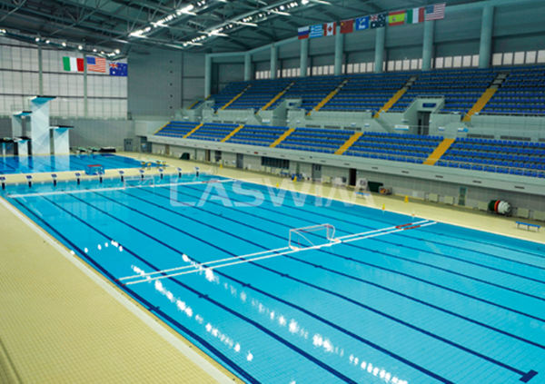 联盛水环境工程有限公司为这次大赛付出了辛勤的劳动,在水质调试和设备运行都有明确的分工,3个水池清澈透亮,每个水池的水浊度为0.198,为了整体效果,除了跳水池各个体育设施全部到位外,比赛池的各种体育设施也全部安装到位。