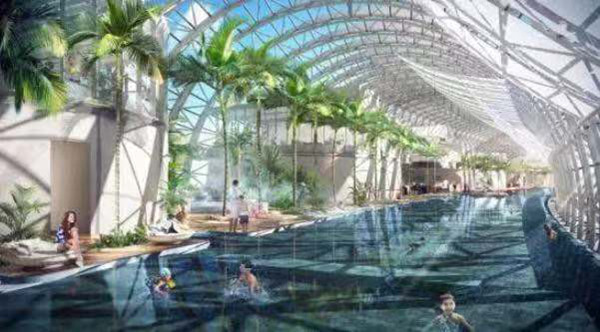 重庆来福士广场位于两江交汇处,本作“近水而乐水”项目内水体景观和游泳场馆多达20多项,其中最具代表性的是位于“重庆之帆”上,由“水环境领航者”——联盛水环境工程有限公司参与的打造的空中无边际游泳池景观。